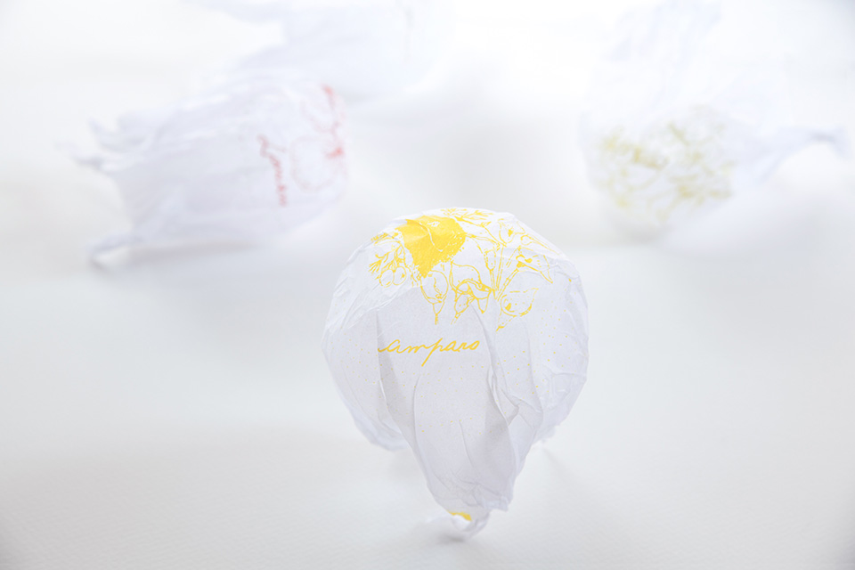 Chaque papier de soie comporte un dessin et le prénom d’une ancienne transbordeuse. Les transbordeuses