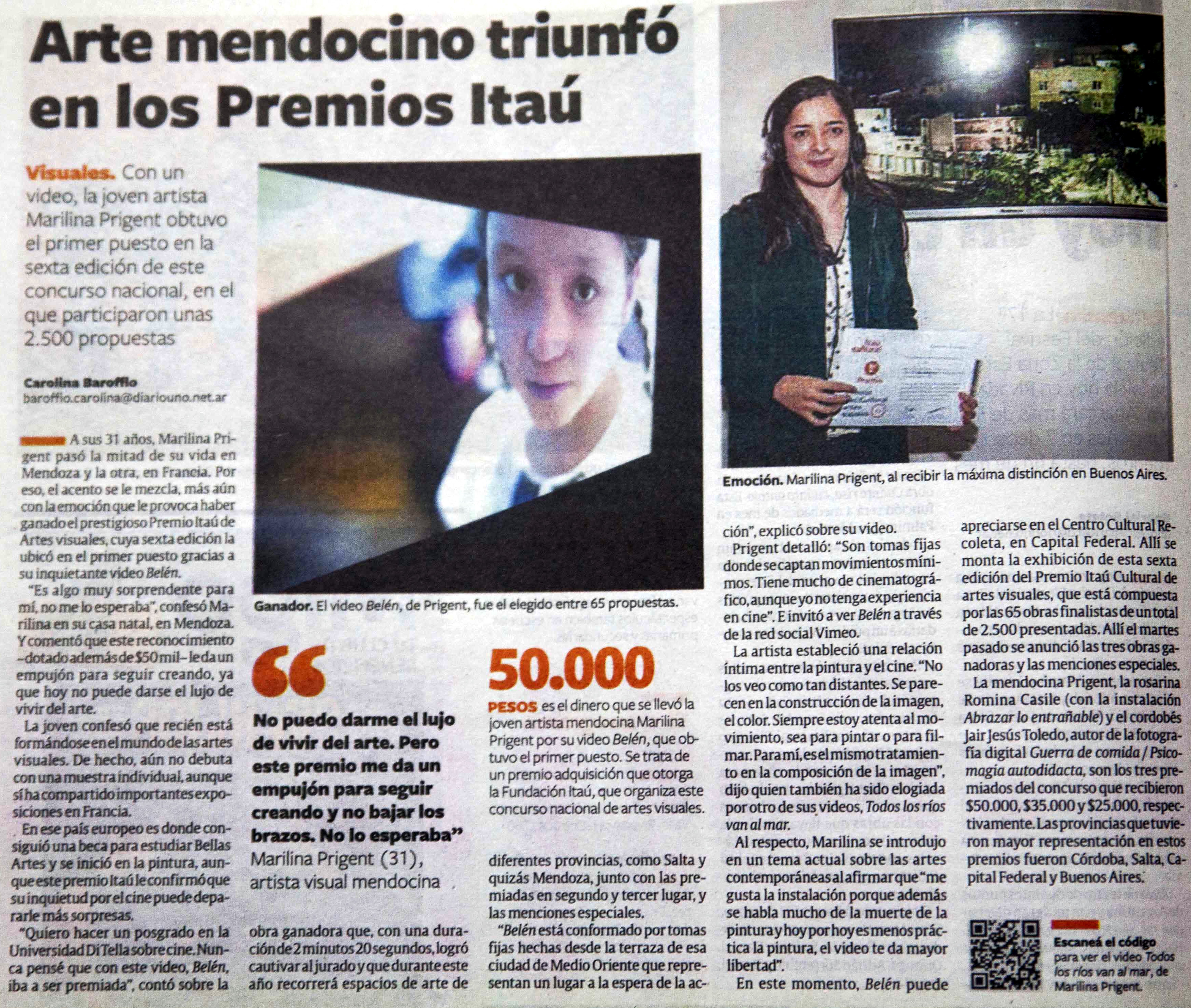 Premio Itaú de Artes Visuales, cuya sexta edición la ubicó en el primer puesto gracias a su inquietante video Belén.